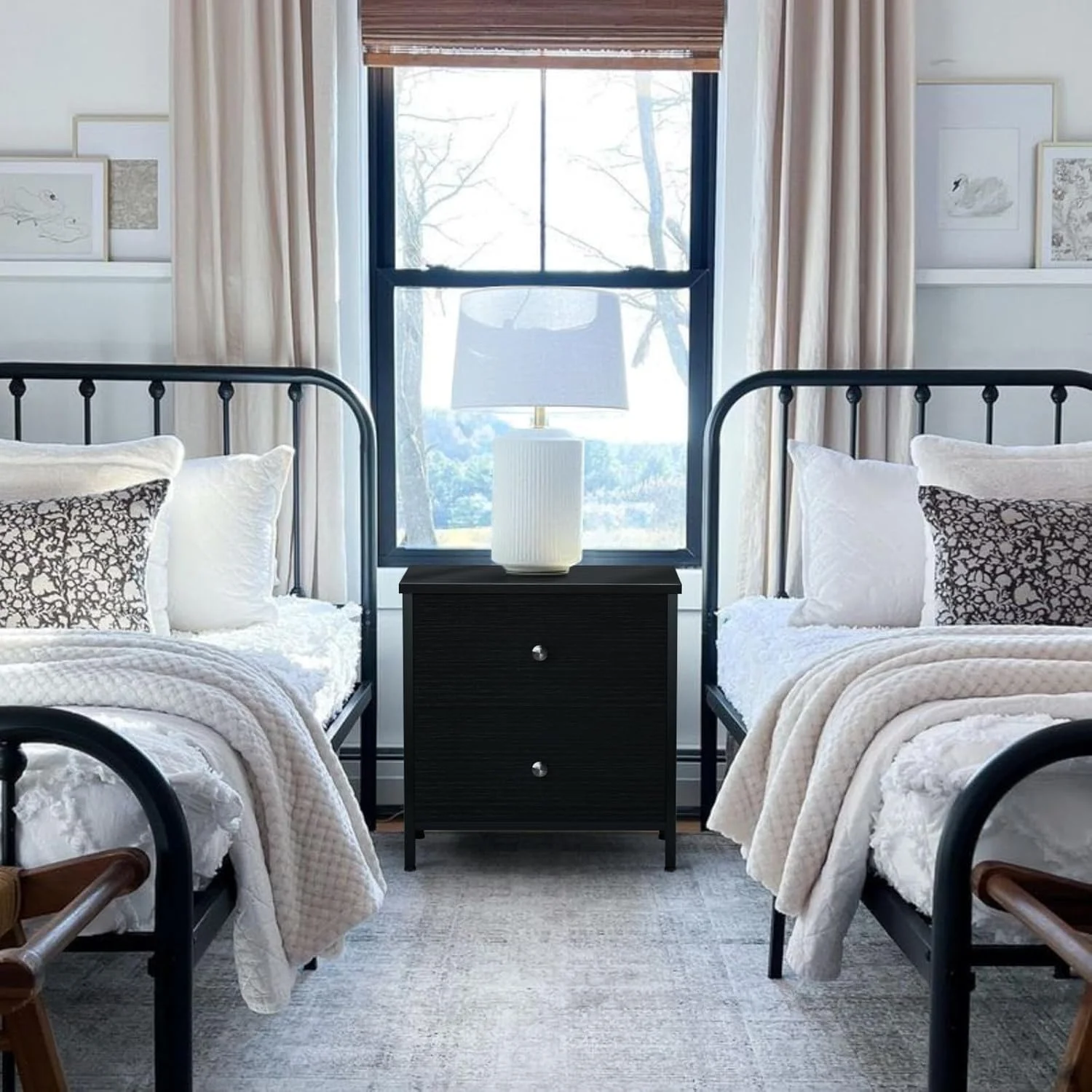 Be the first to review “Black Nightstands Set of 2, 2 Drawer Dresser for Bedroom Night Stand Small Nightstands End Table with Fabric Drawers Modern” Cancel reply