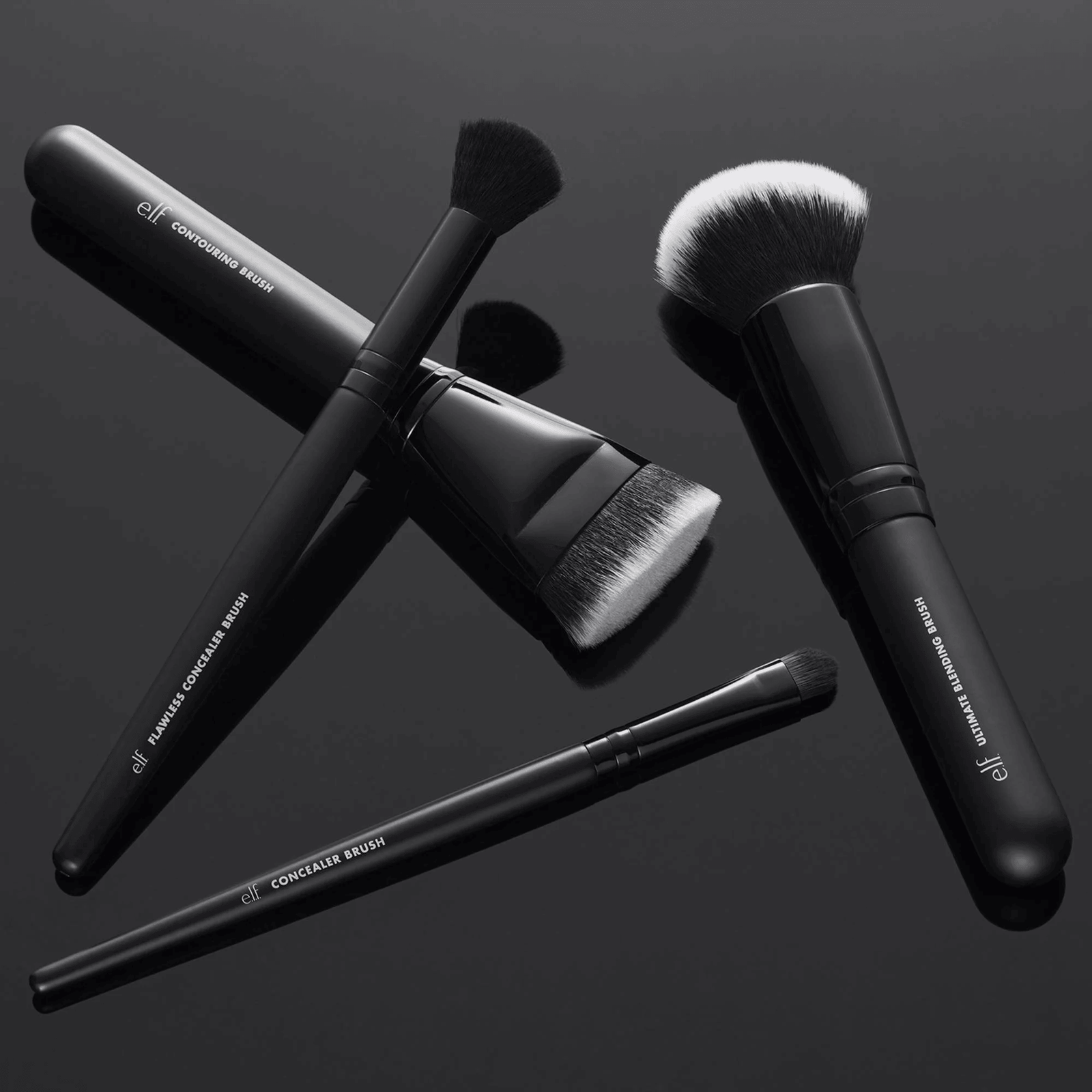 The e.l.f. Complexion Perfection Brush Kit was curated by makeup artists to help you create looks step-by-step. This 4-piece face brush kit gives you all the tools you need for perfectly applied foundation and concealer. This cruelty-free brush kit is made with 100% animal hair-free, synthetic bristles that are soft and easy to clean.