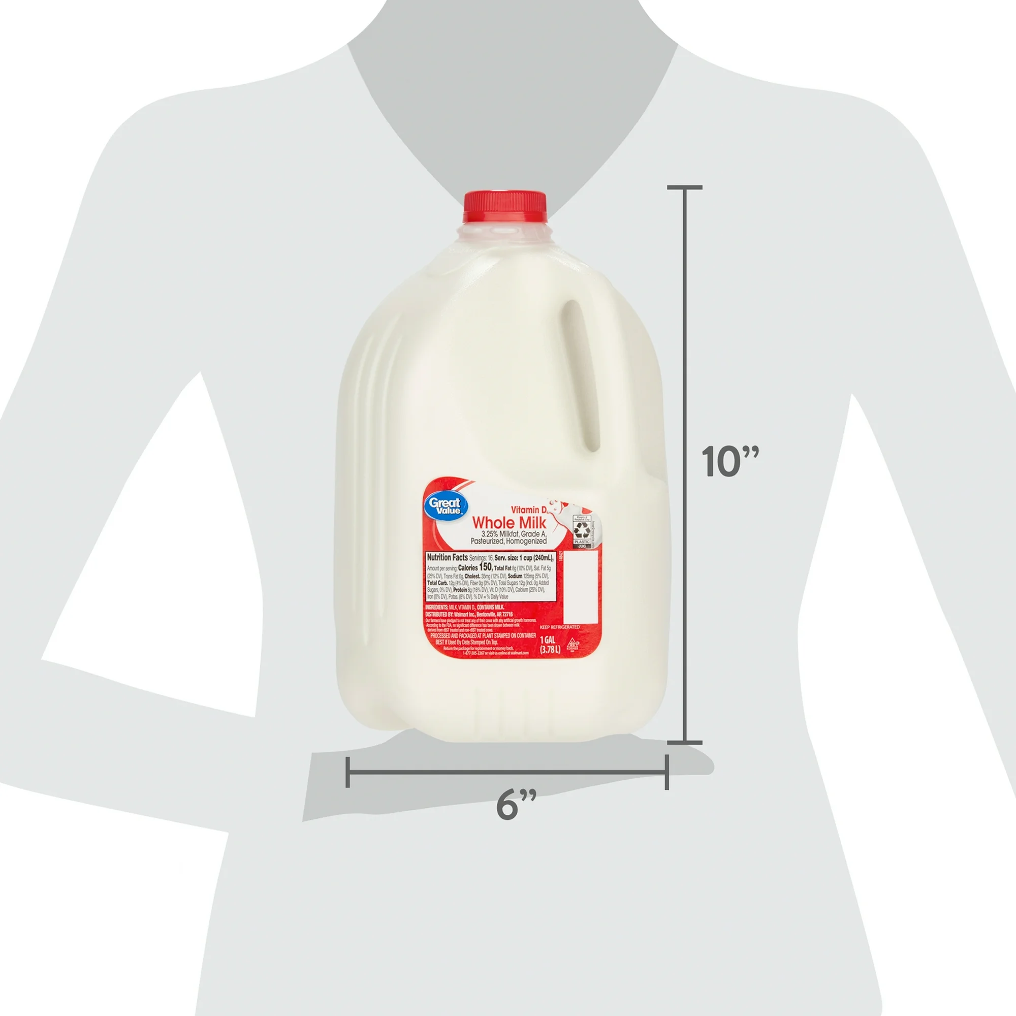 Enjoy the wholesome goodness of Great Value Whole Vitamin D Milk Gallon in a plastic jug, 128 Fl Oz. This Grade A quality milk is pasteurized and delivers fresh from the farm taste. It offers an abundance of nutritional benefits such as protein, calcium, potassium and vitamins A and D. Our farms have pledged to not treat any cows with any artificial growth hormones. Great Value products provide families with affordable, high quality grocery options. With our wide range of product categories spanning grocery and household consumables, we offer you a variety of products for your family’s needs. Our products are conveniently available online and in Walmart stores nationwide.
