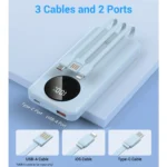 - 【3 Charging Cables & 2 Ports】The portable charger is built-in 2 output cables (Type-C Cable*1, IOS Cable*1) and 1 USB-A input cable. And it is equipped with 1 USB output port and 1 Type-C output/input bidirectional port. Whether output or input, you don’t need to carry charging cables, get rid of messy cables.
