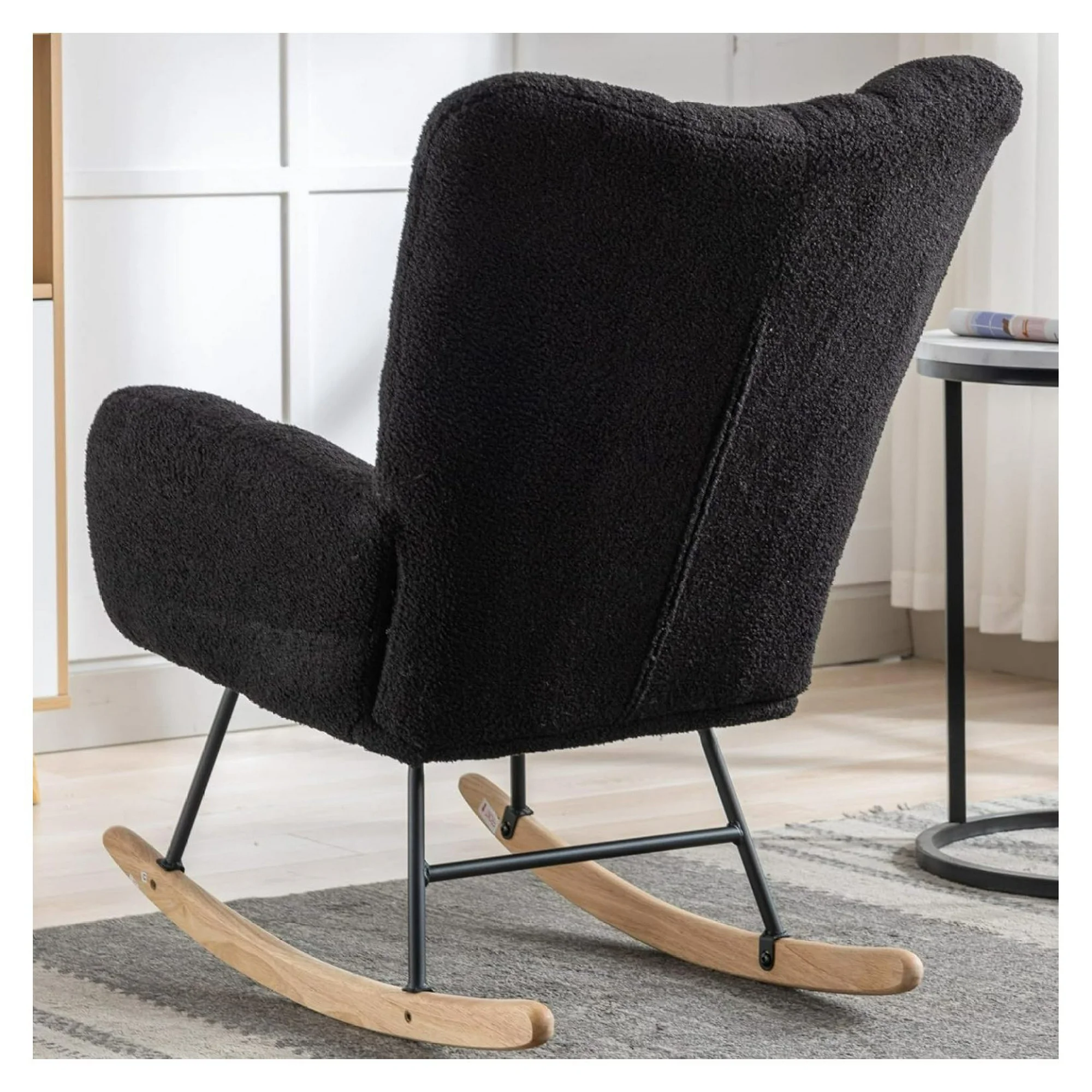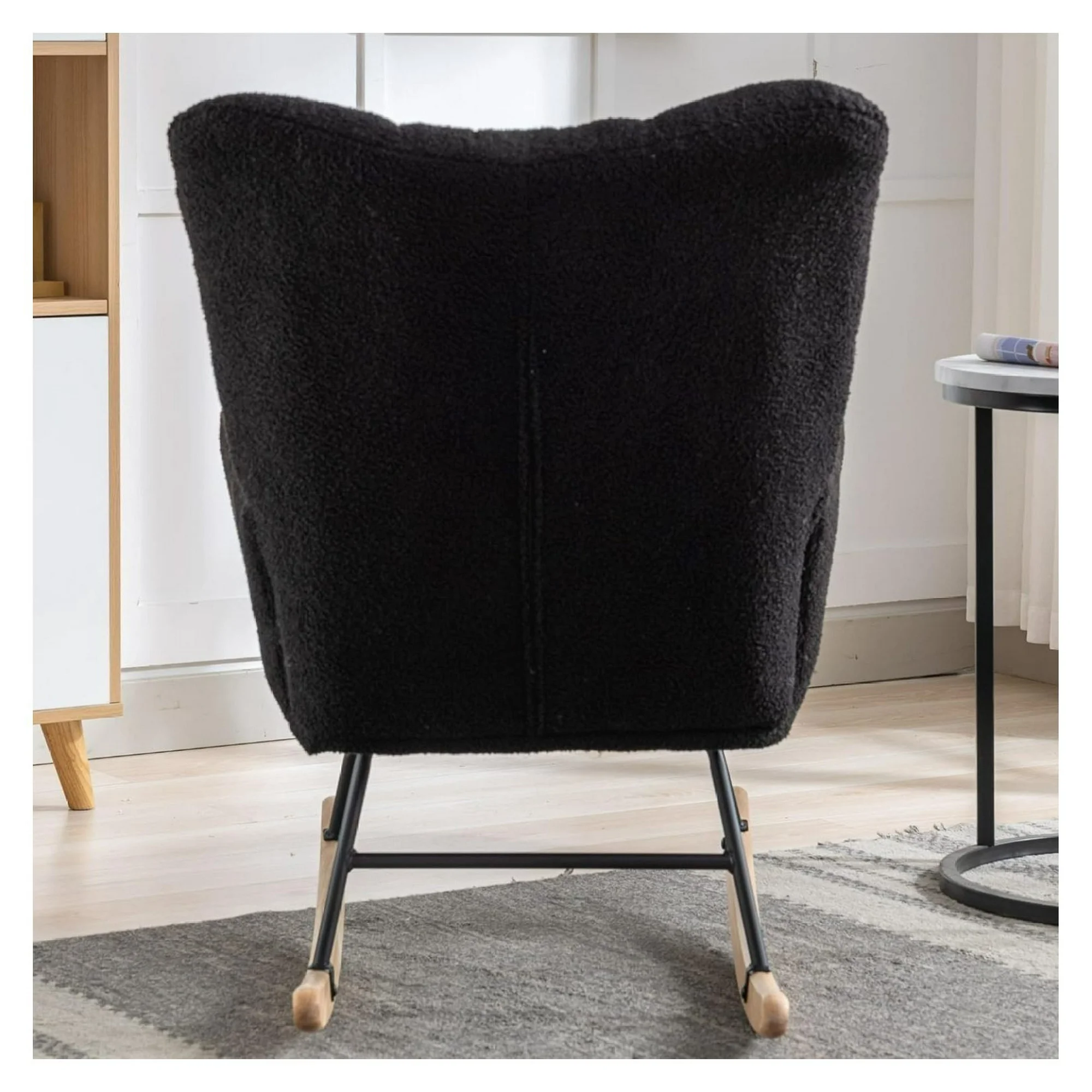 Rocking Chair Nursery, Teddy Upholstered Glider Rocker with High Backrest, Reading Chair Modern Rocking Accent Chairs Glider Recliner for Living Room, Nursery, Bedroom,Black