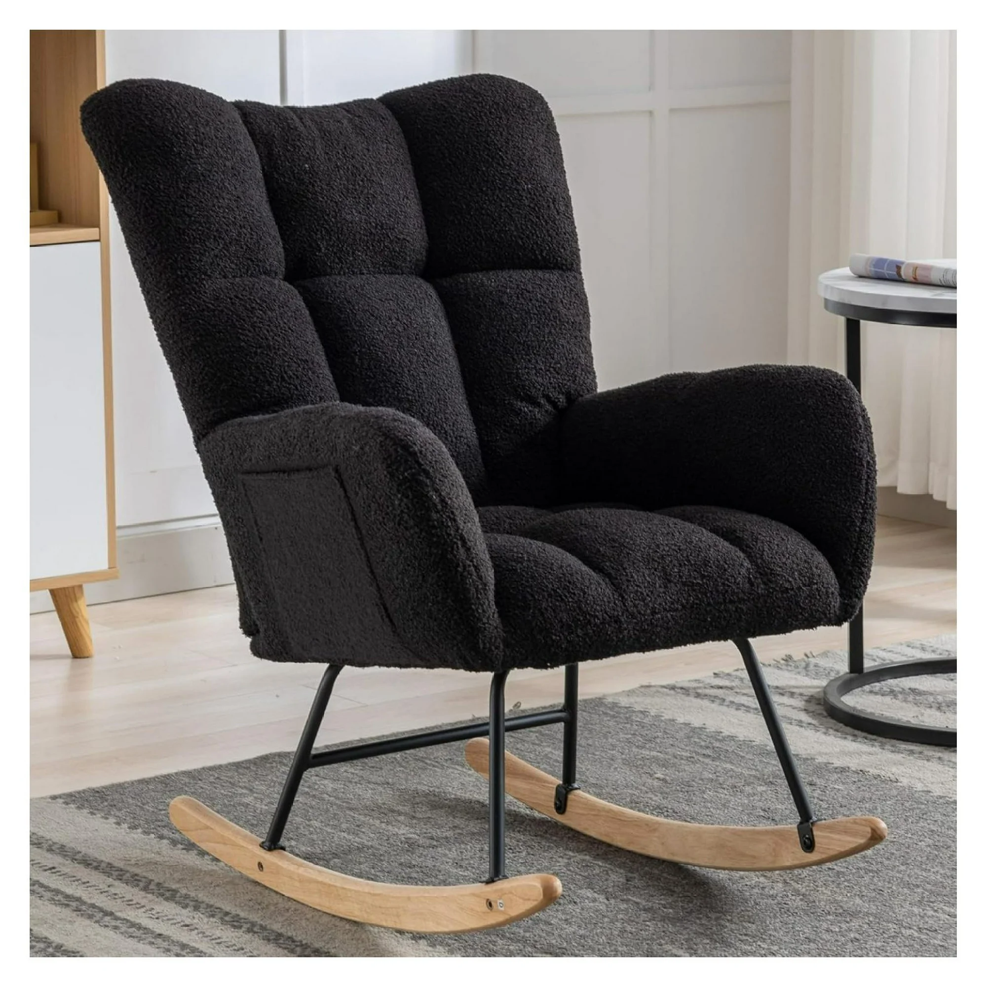 - [Super Comfort]Covered with soft teddy fabric and filled with a high-density soft sponge, our modern rocking chair can bring you a gentle touch and ultimate seating comfort. The well-cushioned generous seat depth and width provide ample seating space and give you a comfortable experience