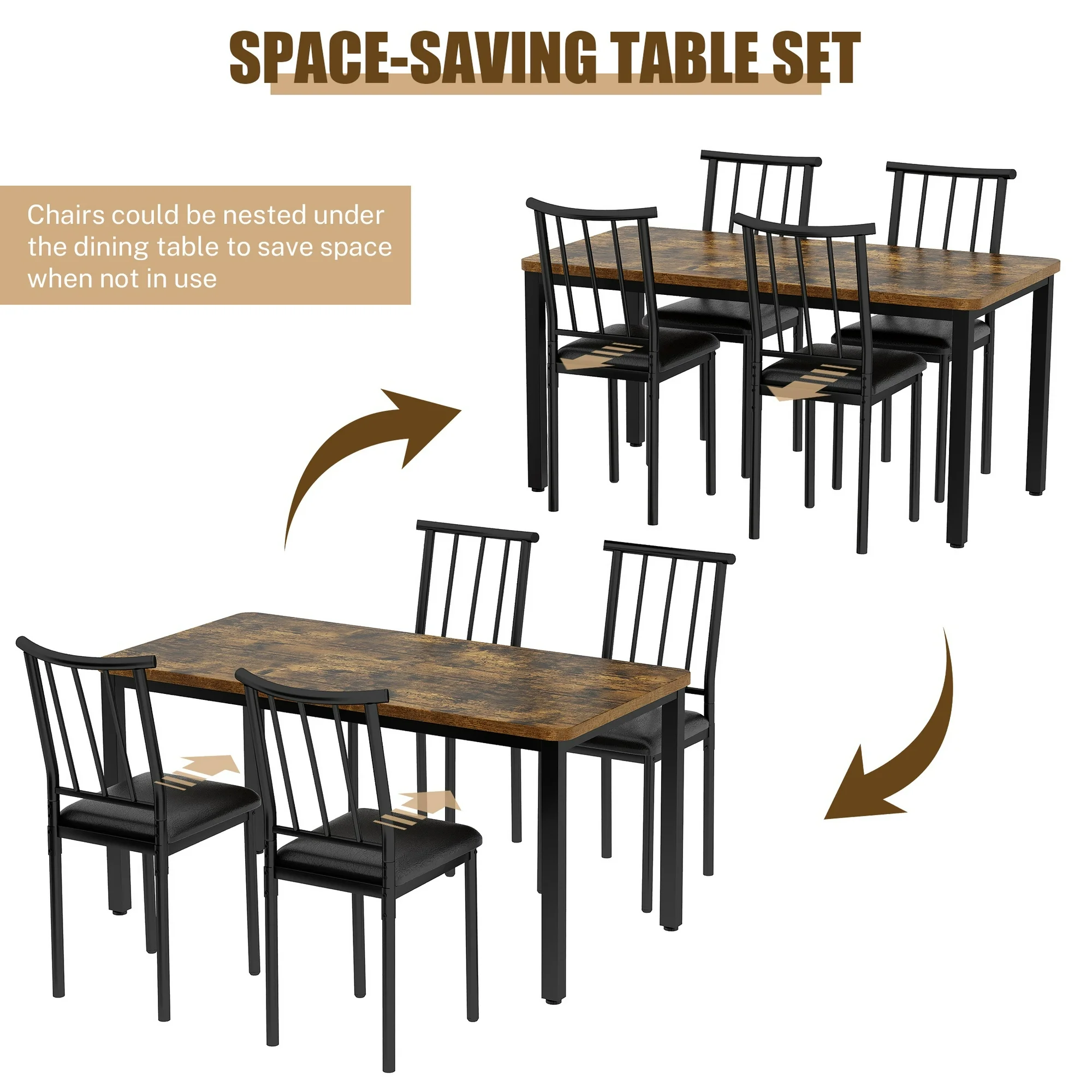 - Space-Saving Design – Maximize your dining area with the UHOMEPRO 5 Piece Kitchen Table Set, which is thoughtfully designed to fit into smaller spaces. Whether you have a cozy kitchen nook or a compact dining room, this set provides ample seating without overwhelming the space, making it ideal for apartments and small homes.
